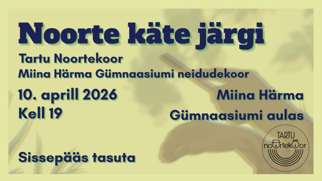 Et sellele tunnistajaks olla, kutsume teid 10. aprillil kell 19.00 Miina Härma Gümnaasiumi aulasse kontserdile “Noorte käte järgi”. Külalisena esineb Miina Härma Gümnaasiumi neidudekoor.