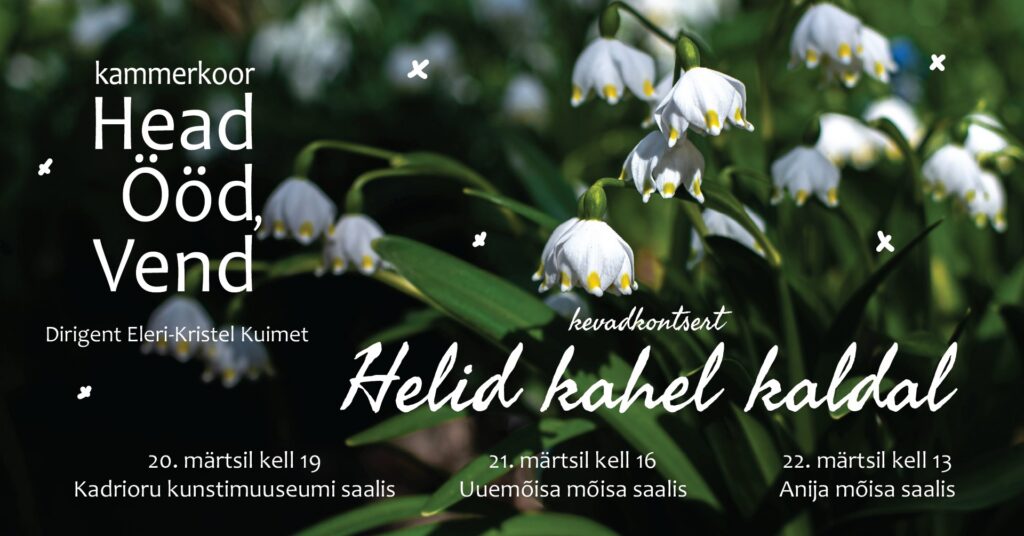 Kammerkoori Head Ööd, Vend kevadkontsert “Helid kahel kaldal” Uuemõisa mõisa saalis 21/03/2026 16:00 Piletid saadaval Fientas